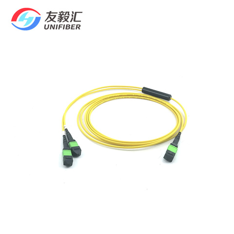 สายแพทช์ไฟเบอร์ลำตัว16 Core MPO APC ถึง2x12 Core สำหรับผู้หญิงสายแพทช์ไฟเบอร์โหมดเดี่ยว LSZH 5M Type B